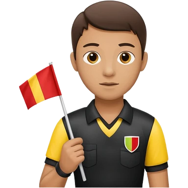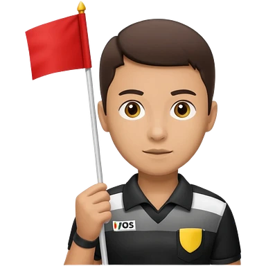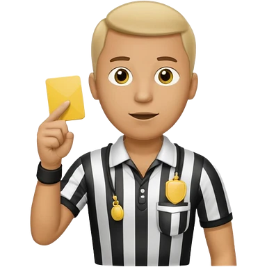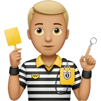 referee emoji, apple style, holding a red card, black and white striped shirt, whistle emoji