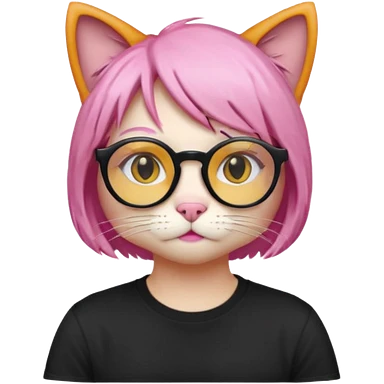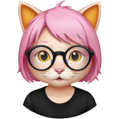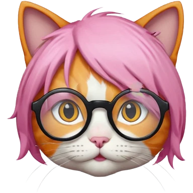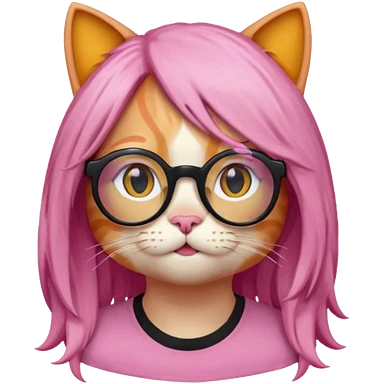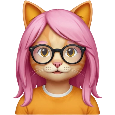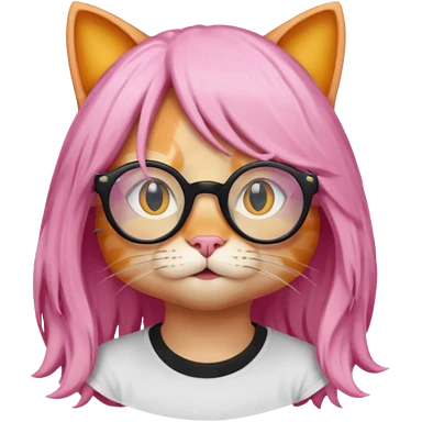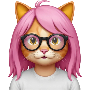 Orange Yellow cat wearing a long pink hair wig, black circle glasses, white T-shirt emoji