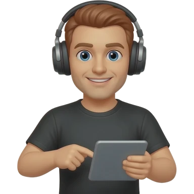 A man with headphones, wearing a black shirt, with red hair, and a tablet for playing games. emoji