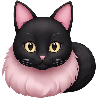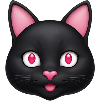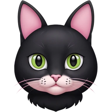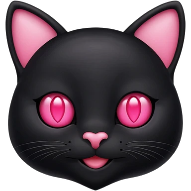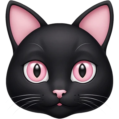 a black cat with black pupils and white eyes, with soft pink ears, looking to the side in an Apple-style emoji | AI Emoji Generator