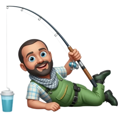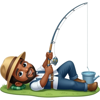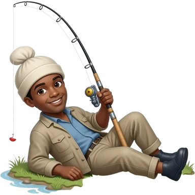 a black fishermen laying on the ground with a fishing pole emoji