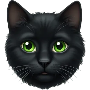 A black fluffy cat with dark green eyes lies emoji | AI Emoji Generator