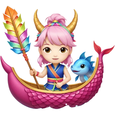 a-chibi-girl-dressed-as-a-dragon-boat-drummer,-holding-soft-pastel-drumsticks,-standing-in-a-fluffy-dragon-boat,-colorful-festival-ribbons-flying,-sparkles-and-cute-mini-fish-swimming-below,-soft emoji