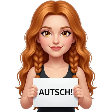 sexy girl with long wavy ginger braids and ginger eyes wearing a black tanktop is holding a white colored sign with AUTSCH! written on it emoji
