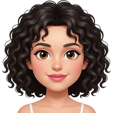 A girl with curly black hair, wide brown eyes, full pink lips, thick black eyebrows, and rosy, plump cheeks. emoji