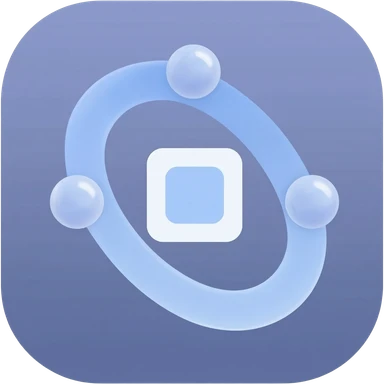 An app icon β a central solid node or square, wrapped by two mirrored angle-bracket shapes, with 2β3 small orbiting dots/tiles converging into the center. emoji