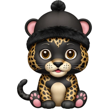 A black jaguar wearing a baby hat emoji | AI Emoji Generator