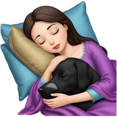 sleeping beauty brunette white girl with a silk pillow and black Labrador emoji