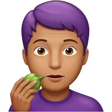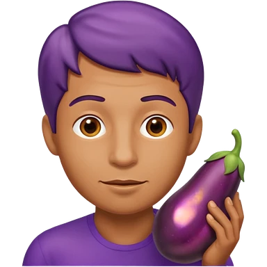 A man savoring an eggplant, his gaze betraying wonder at this fresh vegetable. emoji