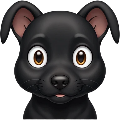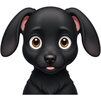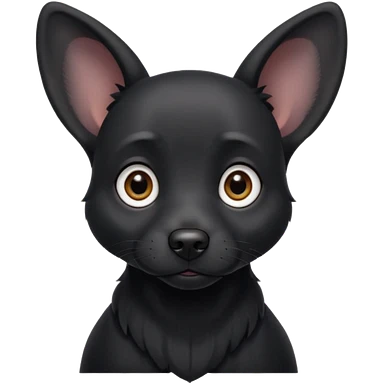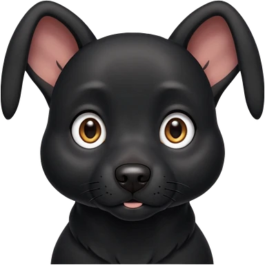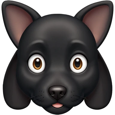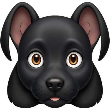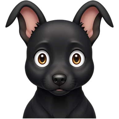 Shadow is a black dog with big upright ears and bright, expressive eyes. He has a sleek, dark coat and a calm but alert look. His face is gentle and intelligent, with a slightly curious expression. Shadow looks loyal, attentive, and a little playful, giving off both a protective and affectionate emoji