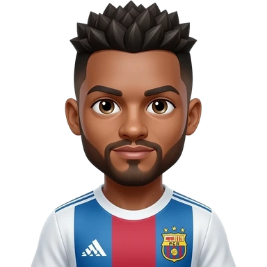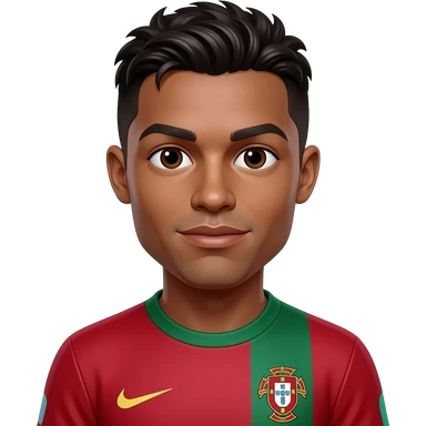 A black man with Messi hair and a Ronaldo top what is red and green the cheeks a little chubby emoji | AI Emoji Generator