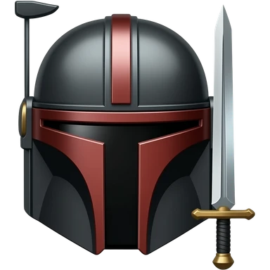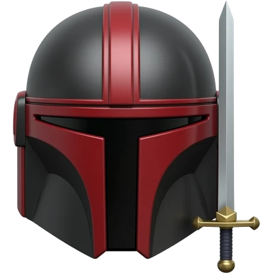 A midnight black Mandalorian helmet with red markings and a line going down the middle holding a sword emoji