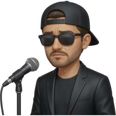 Wearing sun glassesSad, lonely, with tears running down his face divorced wearing all black and a backwards hat tattooed with a beard that’s turning gray Mexican man with headphones in the standing Microphone emoji