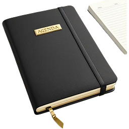 A closed black Moleskine notebook with 'AGENDA' embossed on the cover, professional meeting planner emoji