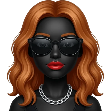 Black Sheep with long auburn hair wearing sunglasses, necklace and lipstick emoji