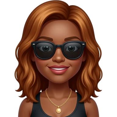 Black Sheep with auburn hair wearing sunglasses, necklace and lipstick emoji