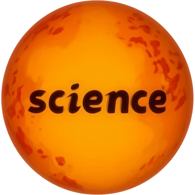 a orange burning planet that has "science" written on it in black letters in a realistic style emoji