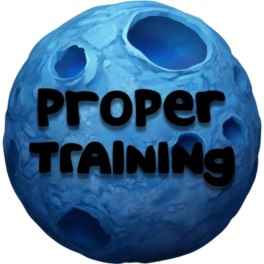 a blue burning planet with "Proper Training" written in black letters on it, just the planet, no background emoji