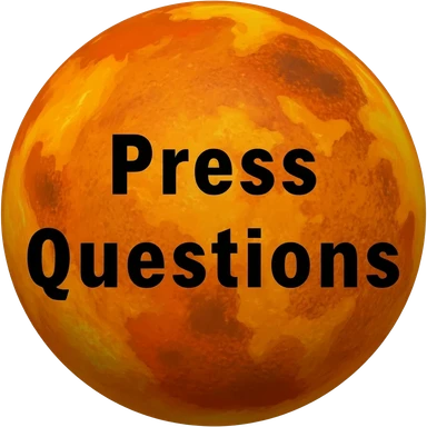 a yellow burning planet with "Press Questions" written in black letters on it, just the planet, no background emoji