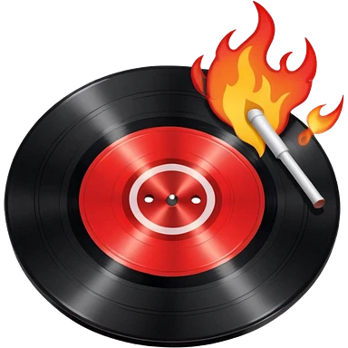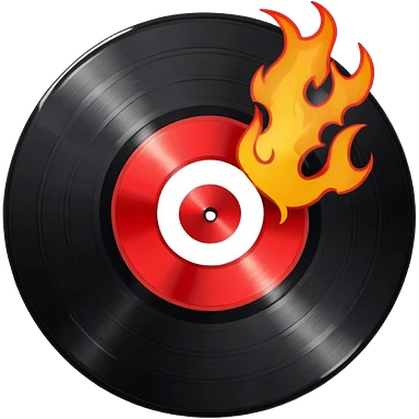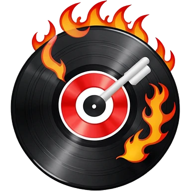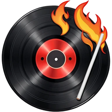 a black vinyl record white stick with red outlin and flames emoji