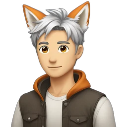 a blinking smiley with red cheeks with fox ears and headphones emoji | AI Emoji Generator