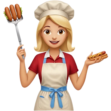 Female chef with long blonde hair holding a beer and a hotdog emoji