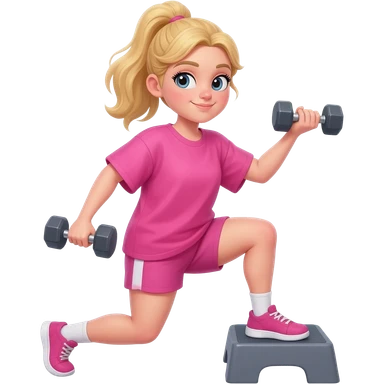 a blonde pretty girl in a pink workout set lifting pink weights emoji