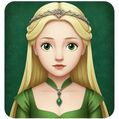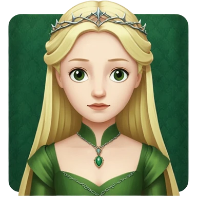 Elizabeth Woodville is the queen of York and looks like a blonde Rebecca Ferguson. She is wearing a green dress and looks like a Game of Thrones Character emoji