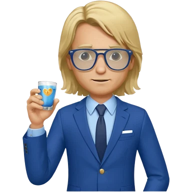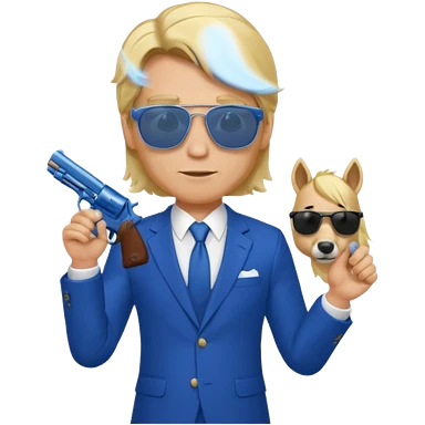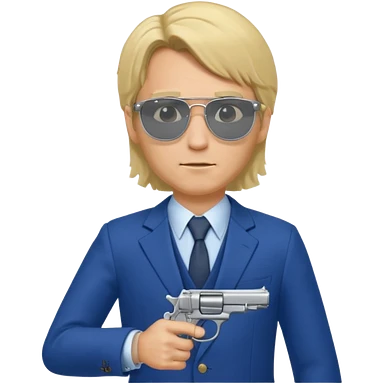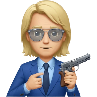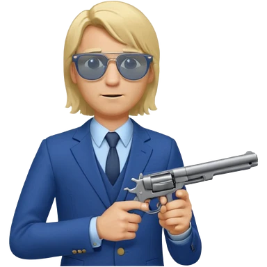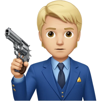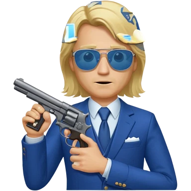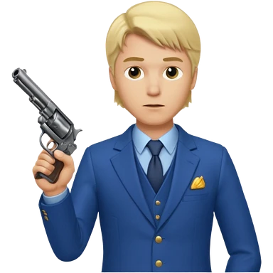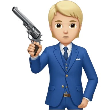 A blond man in a blue suit with a Colt pointing forward. emoji | AI Emoji Generator