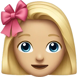 Blond haired Girl with teal eyes with pink glasses and pink shirt holding a pug emoji