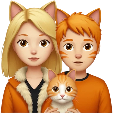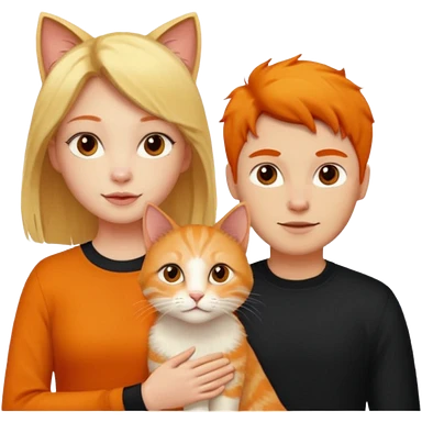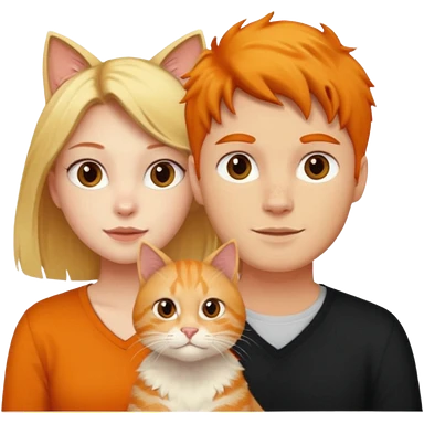 A blonde girl, a ginger cat, and a guy with black hair. emoji