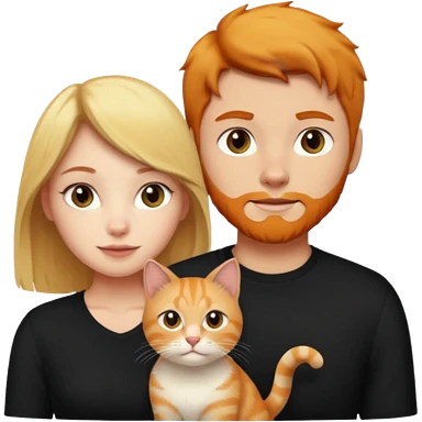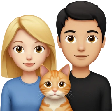 A blonde girl, a ginger cat, and a guy with black hair. emoji | AI Emoji Generator