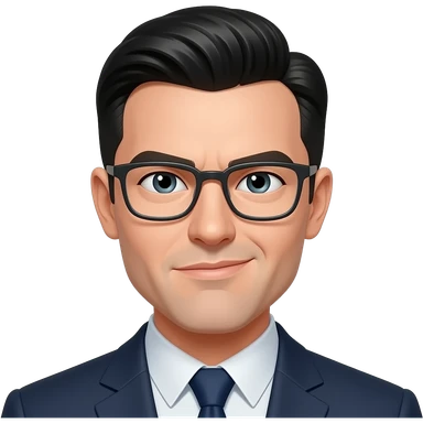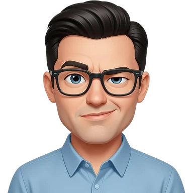 Make a white guy with slicked back short black hair, glasses and a snide squinting look emoji