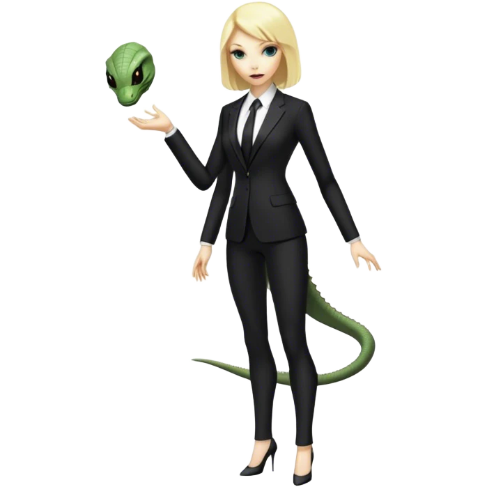 a blonde reptilian alien woman as men in black, full body, full figure emoji | AI Emoji Generator