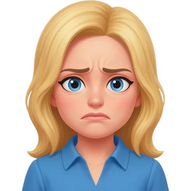 Blond hair woman blue eyed in a blue shirt in disgust emoji