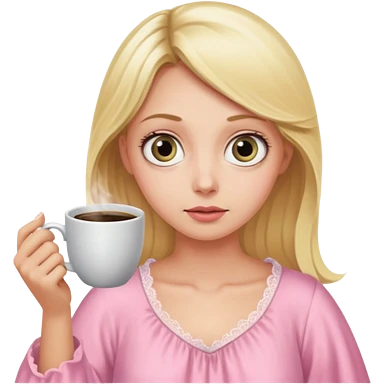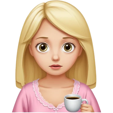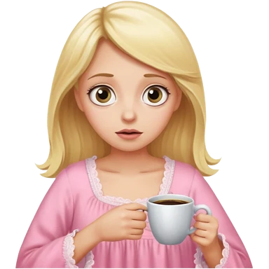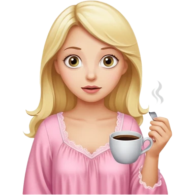 A blonde woman in a pink nightgown with wide eyes looks for coffee. emoji | AI Emoji Generator