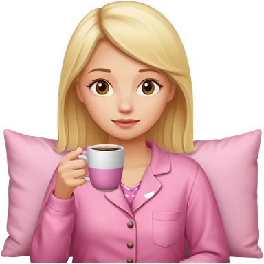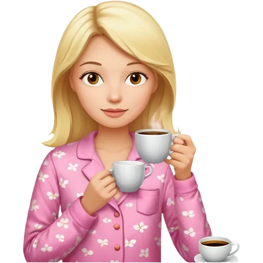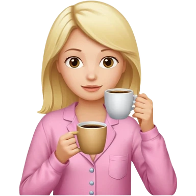 A blonde woman in pink pajamas wakes up to drink coffee. emoji | AI Emoji Generator