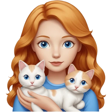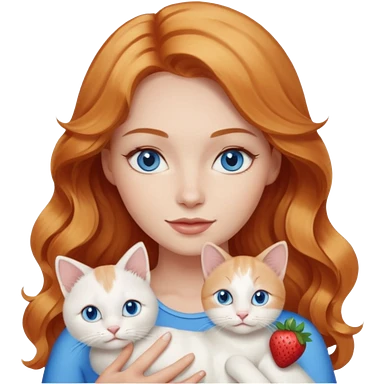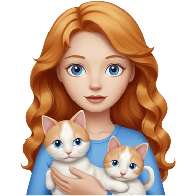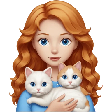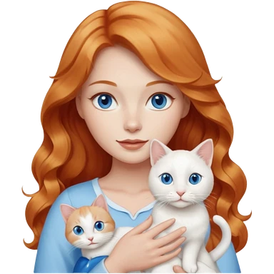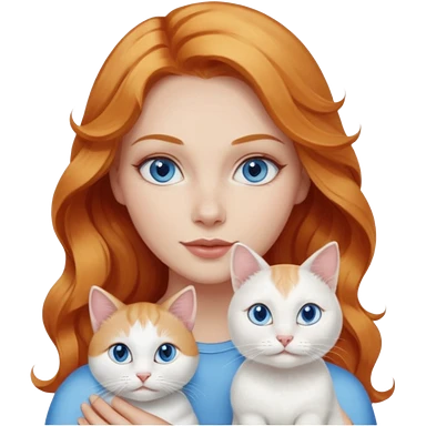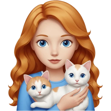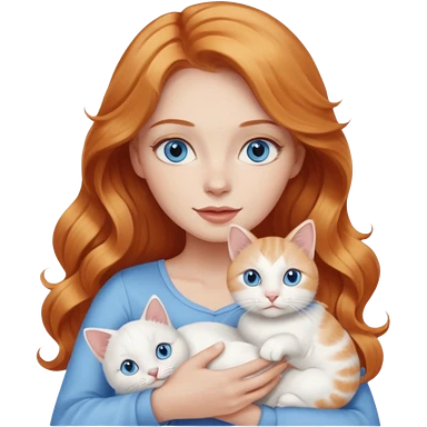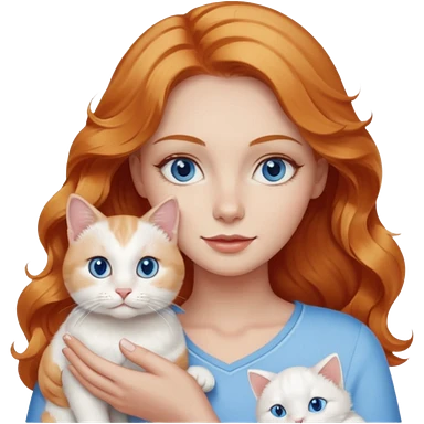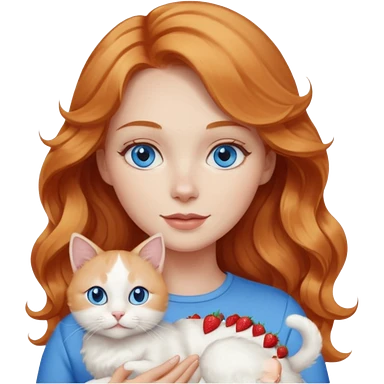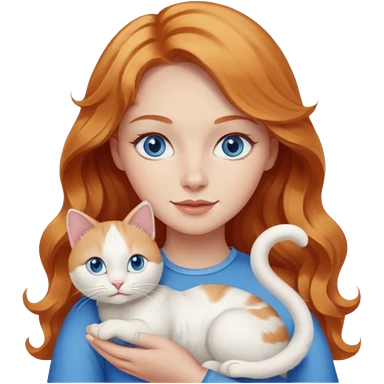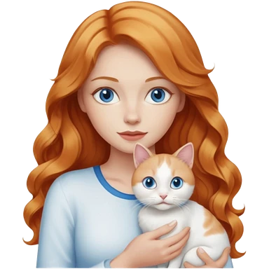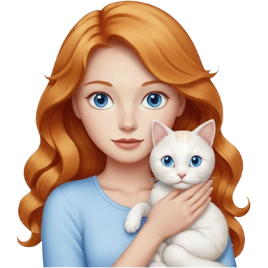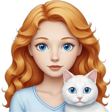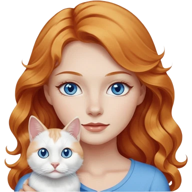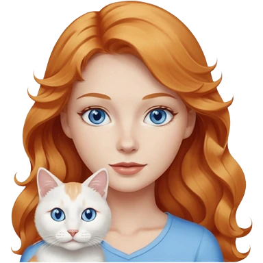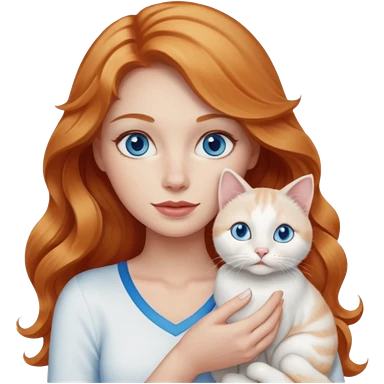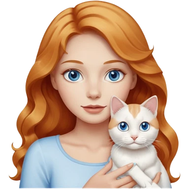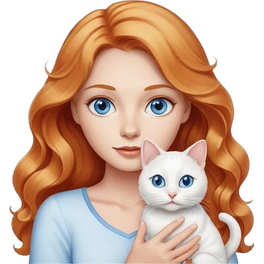 Long wavy strawberry blonde blue eyes woman with a white cat with blue eyes realistic emoji