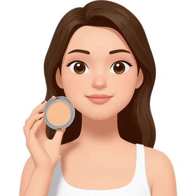 Draw a mixed-race girl applying makeup, wearing a clean girl blouse and with straight brown hair emoji