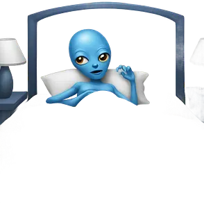 A blue alien wizard standing on a UFO near the edge of a waterfall emoji | AI Emoji Generator