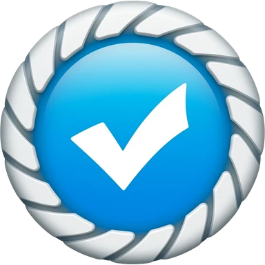 A blue circle with zigzag edge and white verify in centreck emoji | AI Emoji Generator