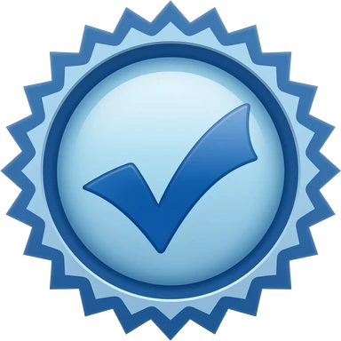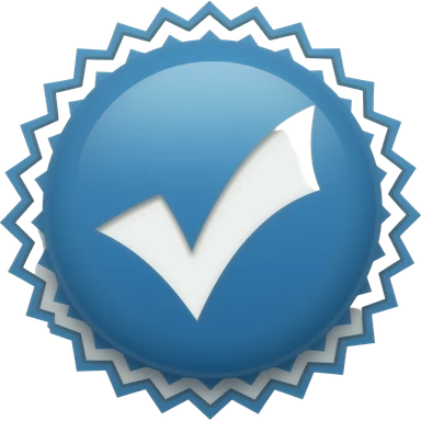 A blue zigzag circle with white verify in centreck emoji