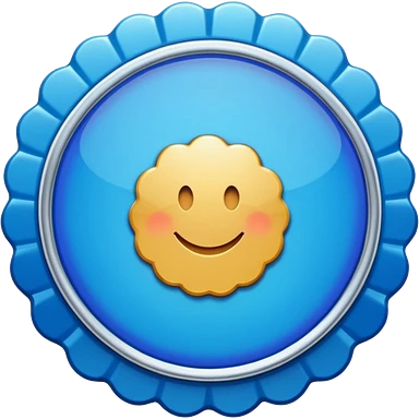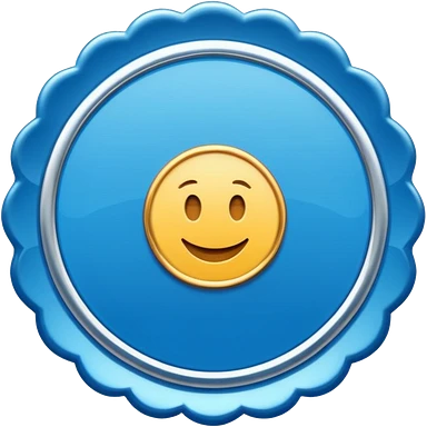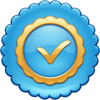 A blue scalloped circle with a verified thing emoji