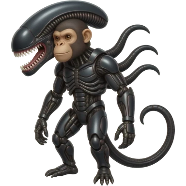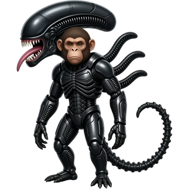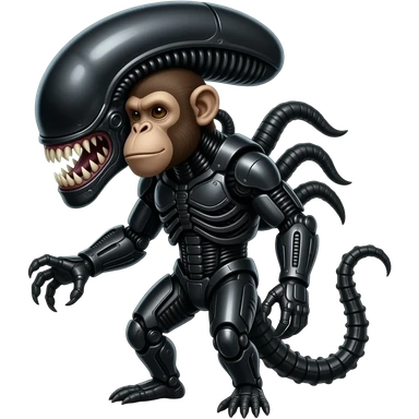 A monkey with Xenomorph features, elongated head, black exoskeleton, and biomechanical appearance emoji