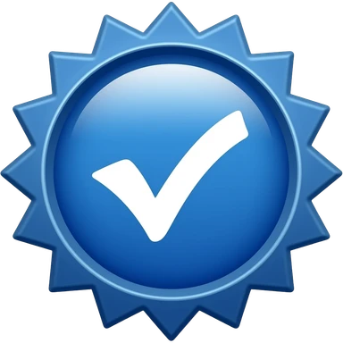 A blue star-shaped badge with smooth, evenly spaced edges and a slight gradient, featuring a bold white checkmark in the center with clean, thick lines emoji | AI Emoji Generator