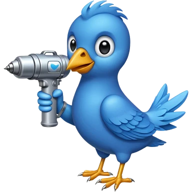 A blue Twitter bird holding a large drill emoji | AI Emoji Generator
