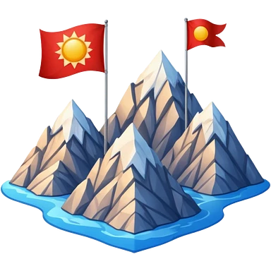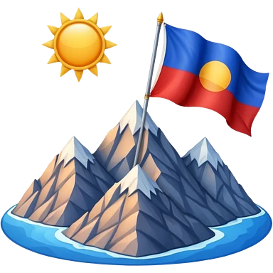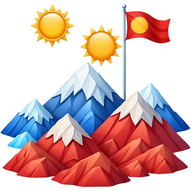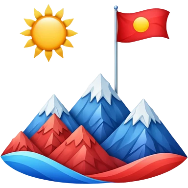 A blue , white and red flag With three mountain and a sun and ⚖️ in the upper part of mountains emoji | AI Emoji Generator