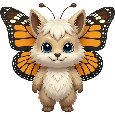 Fluffy furry animal-vernid-grem2-creature with tapered tufted ears, butterfly wings on HEAD emoji