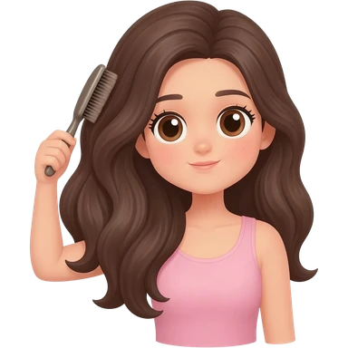 Shy Smile – A blushing, slightly tilted smile with closed eyes, giving a shy but heartwarming vibe, with long brown wavy hair and brown eyes emoji