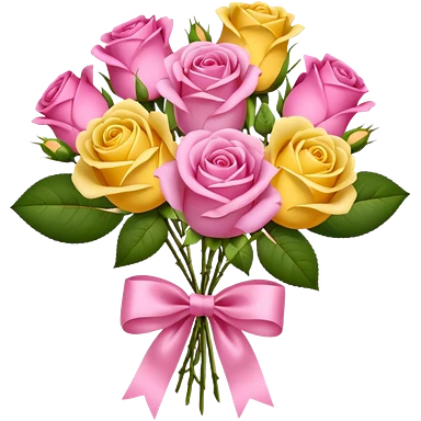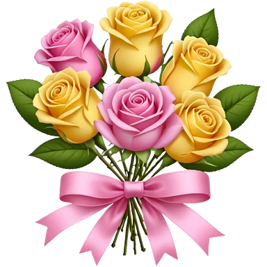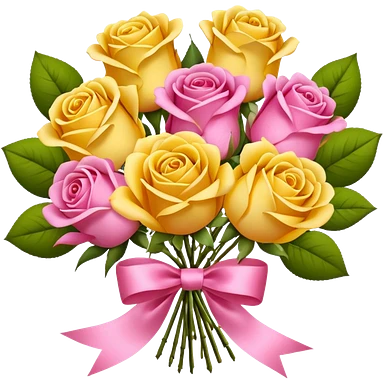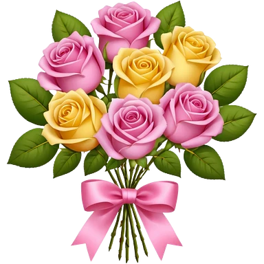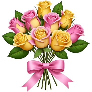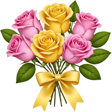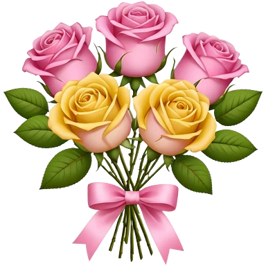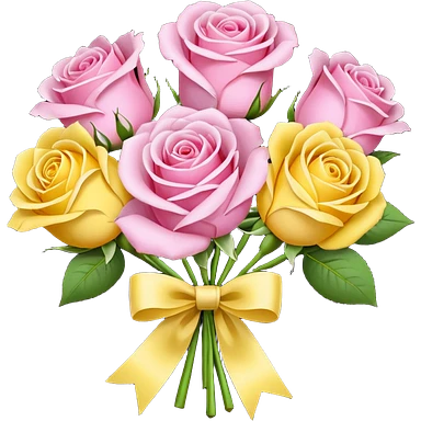 A bouquet of flowers, composed of pink and yellow roses, four blooms in total, tied with ribbon. emoji | AI Emoji Generator